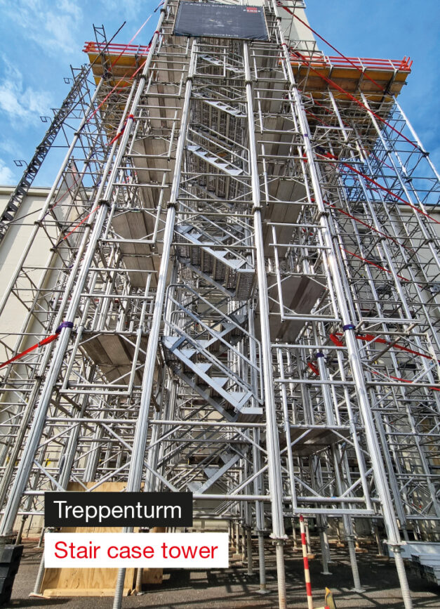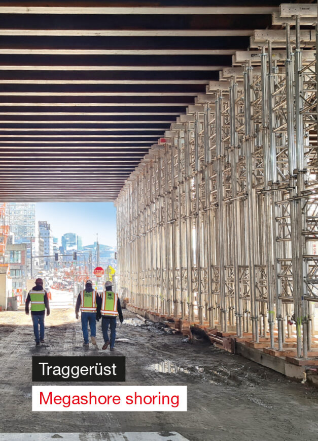 The TITAN aluminium Megashore system can bear all kinds of loads and sets new standards in flexibility and durability. The system enables construction companies to master a wide range of challenges on the construction site, whether as a staircase tower, a loadbearing system, a shoring tower or slab formwork towers or a tunnel wagon.