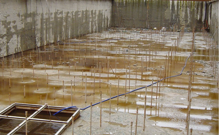 • Underwater or High Groundwater Conditions: Drilling through water or soil prior to excavation, our “bayonet system”, secures slabs against buoyant forces with minimal diver work.